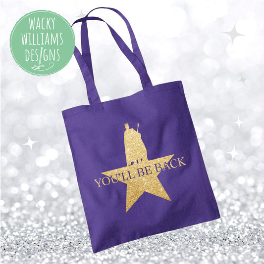 Hamilton Musical TOTE BAG, Glitter You'll be back, Musical Theatre Tote Bag