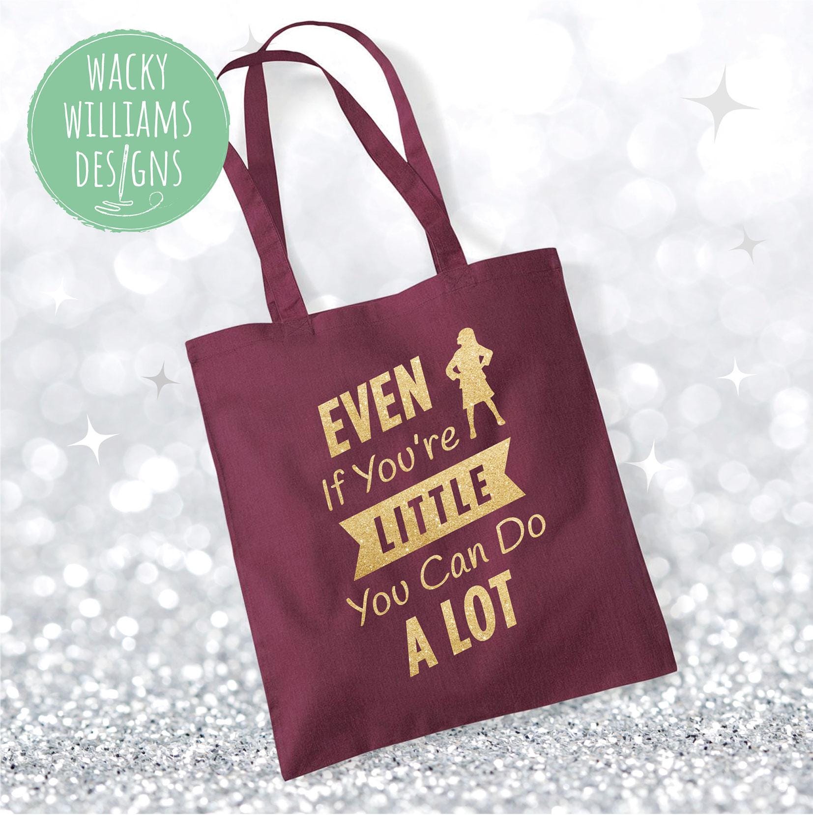 Even if you'r little you can do a lot, Matilda slogan tote bag, cotton shopping tote bag, stylish and eye caching, reusable bag for life.