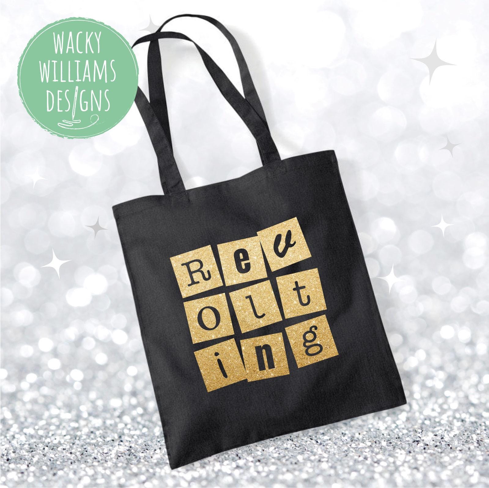 Revolting, Matilda slogan tote bag, cotton shopping tote bag, stylish and eye caching, reusable bag for life.